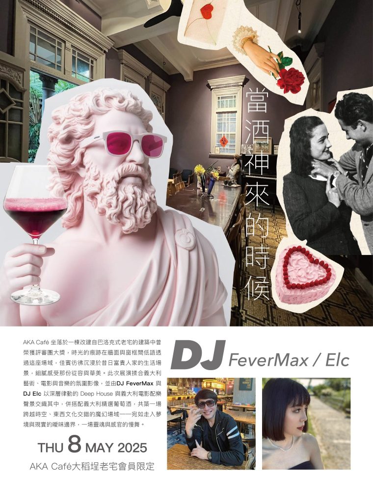 【台北生活美學扶輪社•第56次例會】——當酒神來的時候 Post author:FeverMax Post published:16 5 月, 2025 Post category:MY BLOG 【台北生活美學扶輪社•第56次例會】誠摯感謝台北生活美學扶輪社的邀約,由我們藏憶酒窖策劃第56次例會主題活動——「當酒神來的時候」。這是一場融合義大利文化包含著藝術、設計、電影、品酒、美食與義大利民謠歌劇與電子音樂的感官盛宴,於百年巴洛克老宅中盛大展開。當晚賓客盛裝雲集,在酒光杯影間,DJ音樂悠悠流轉,義大利精選葡萄酒的風韻在空氣中緩緩綻放。整場活動猶如一場跨越時空的魔幻旅程,東方靜謐與西方奔放交錯交融,宛如走入夢境與現實交界的曖昧邊界——那是一場獻給靈魂與感官的慢舞,也是一場對生活美學的深情致敬 開車不喝酒,喝酒不開車 飲酒過量有礙健康 未18禁止飲酒 Tags: Akacafe, Amarone Riserva, CECI, Chianti, COLLIO, DJ, DOCG, electronica, Friulano, gin, Italia, italy, Lambrusco, Monna Lisa, RIVO, Rotary, Sangiovese, Sparkling Red Wine, VIGNAMAGGIO Read more articles Previous Post義大利最棒的琴酒 You Might Also Like 27威爾第歌劇氣泡酒系列品酒會,大獲現場嘉賓好評,成功 24 8 月, 2022 義大利最棒的琴酒 20 11 月, 2024 我們與基隆地標『嶼我』wine pairing 22 2 月, 2024